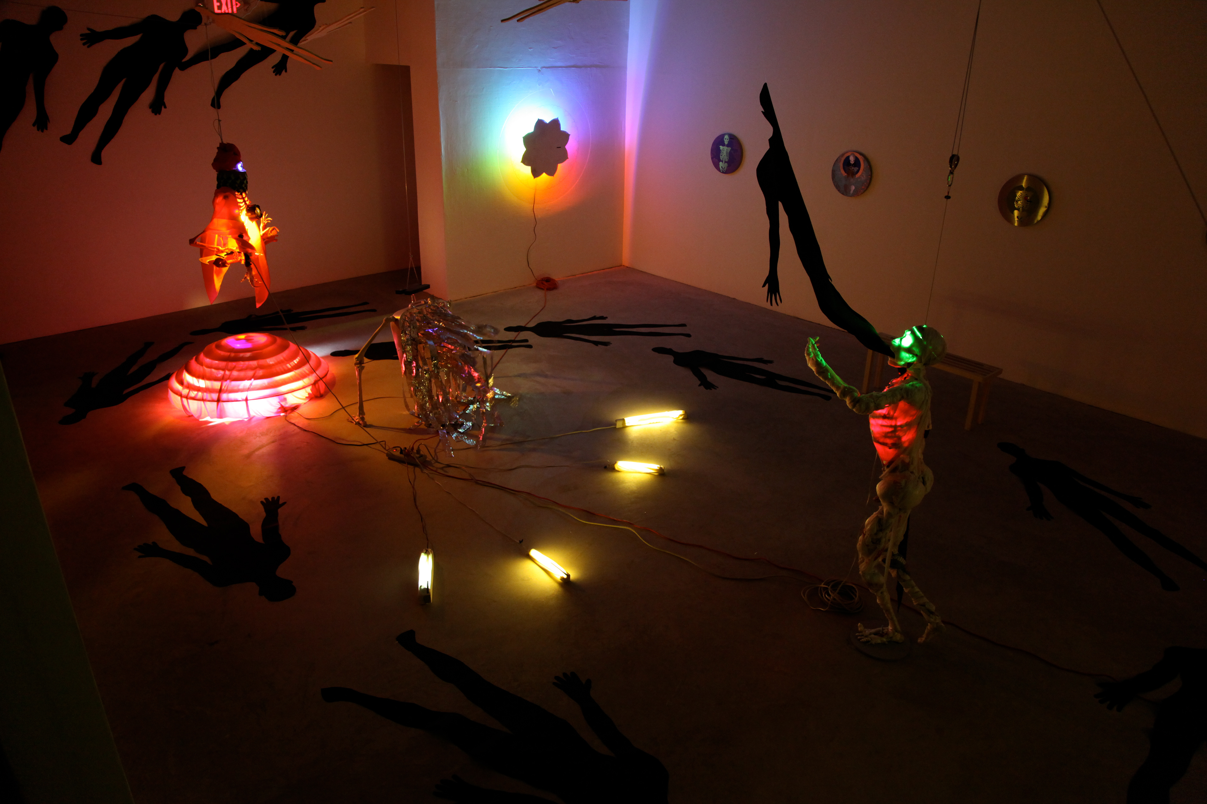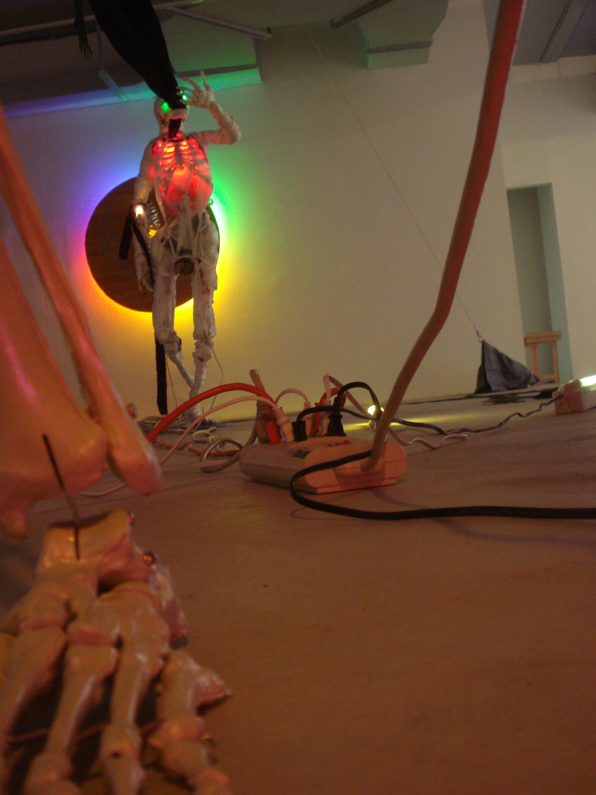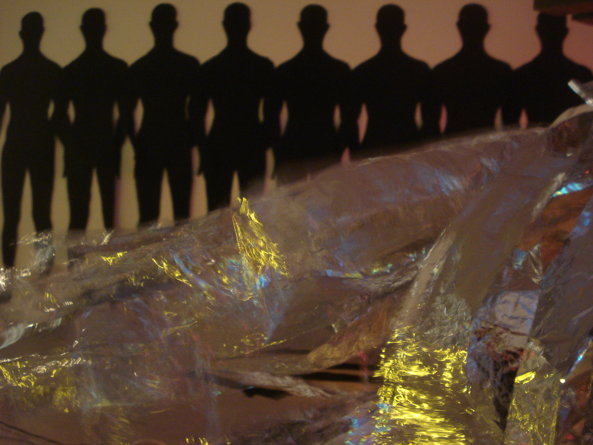 Medium: Lights, motors, plastic skeletons, fabric, plastic bags. Variable Sizes: Life-sized figures