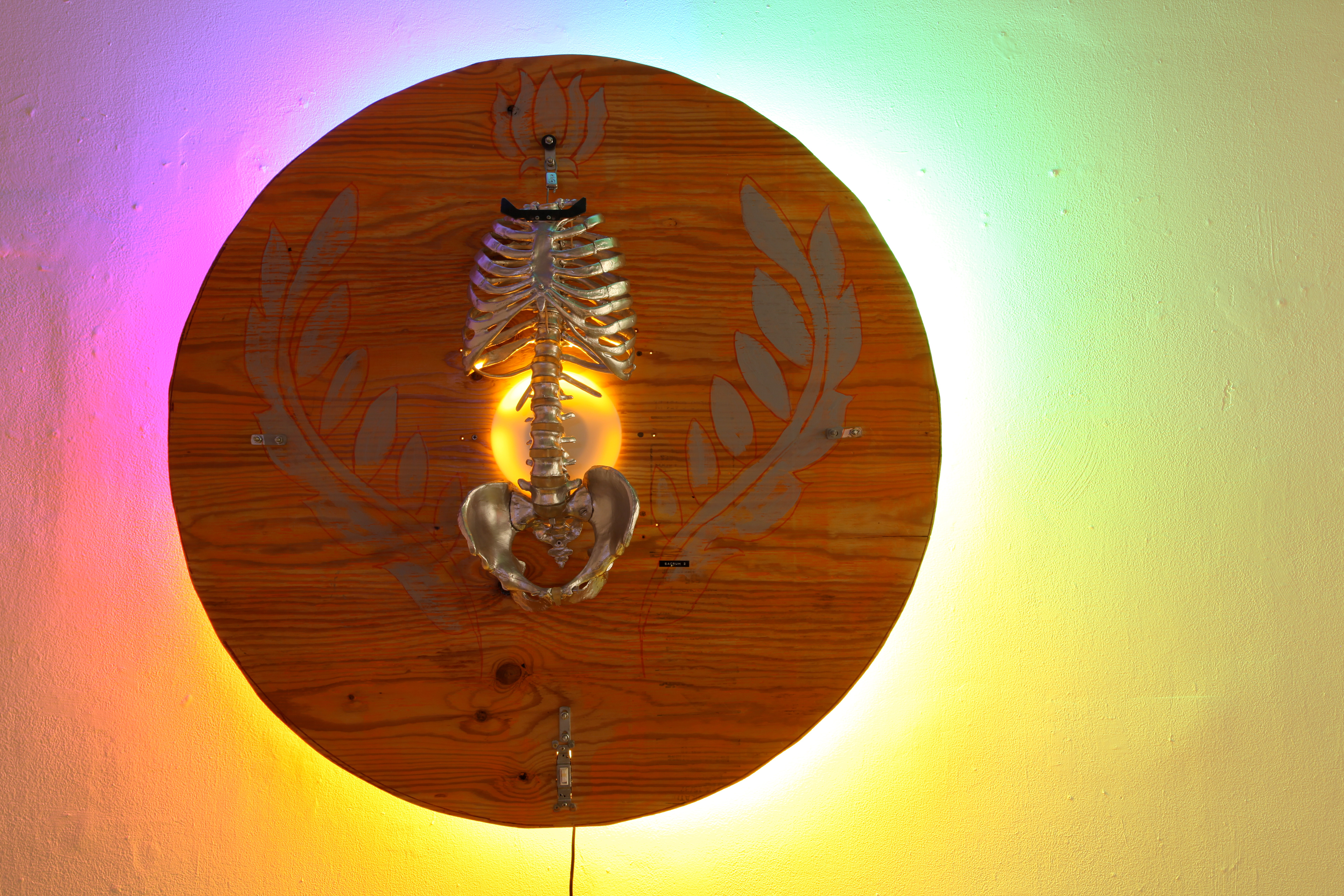This exhibition was an attempt to find "truth" or, more often, uncover deeper questions through material experimentation. The installation became a symbolic convergence of Axioma’s fascinations: cosmology, physics, and mythology. The chakras, akin to spinning galaxies or electrons, represent not only ancient systems of healing but also modern humanistic approaches to psychology—where meditation, self-reflection, and balance form the foundation of consciousness.