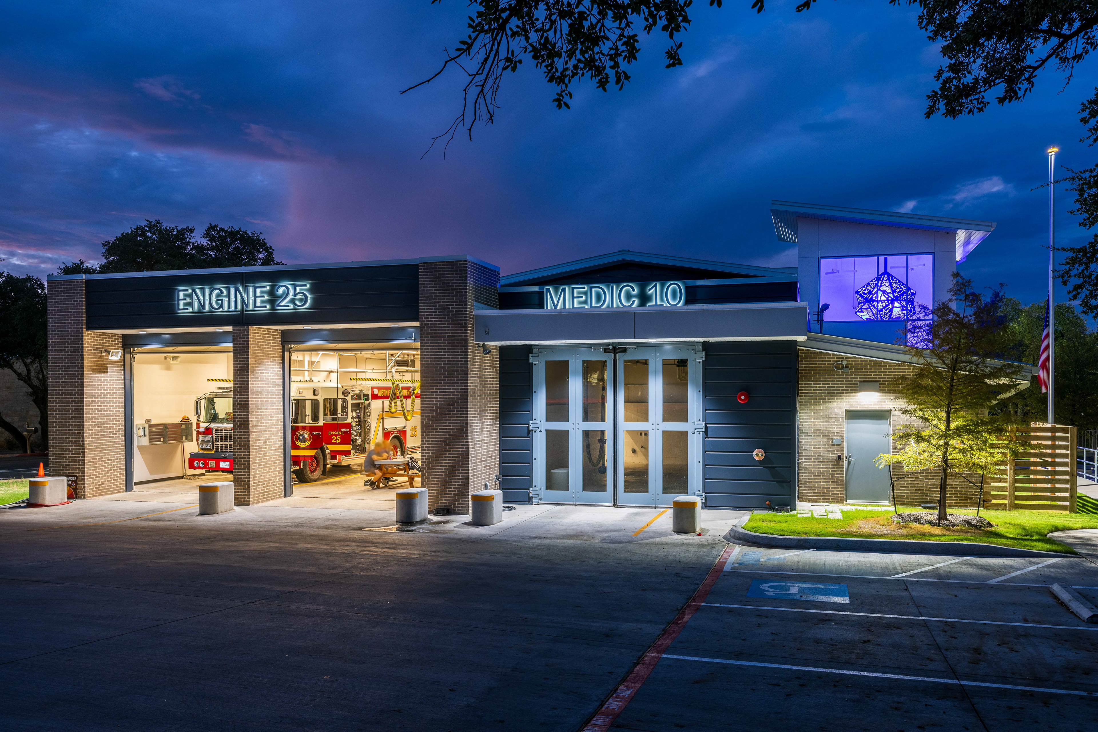 The title of this artwork, “Two Live by A Star”, is a play on words. The “two” are the two organizations that will be living with this star in their new station. It is also a visual metaphor. A star is a symbol of a higher code and purpose to strive for. It is a fixed point to navigate our lives by. That is what each station is, a fixed point in its community.